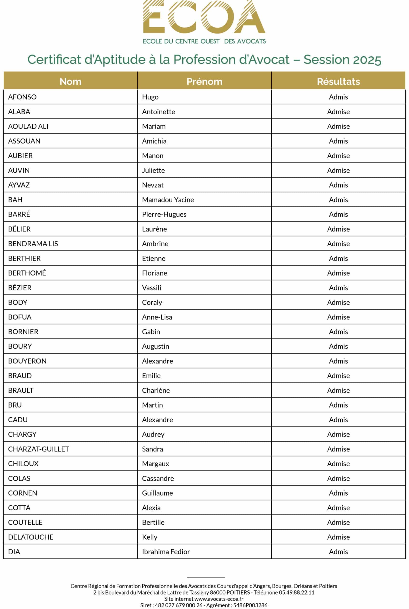 Liste des admis 2025